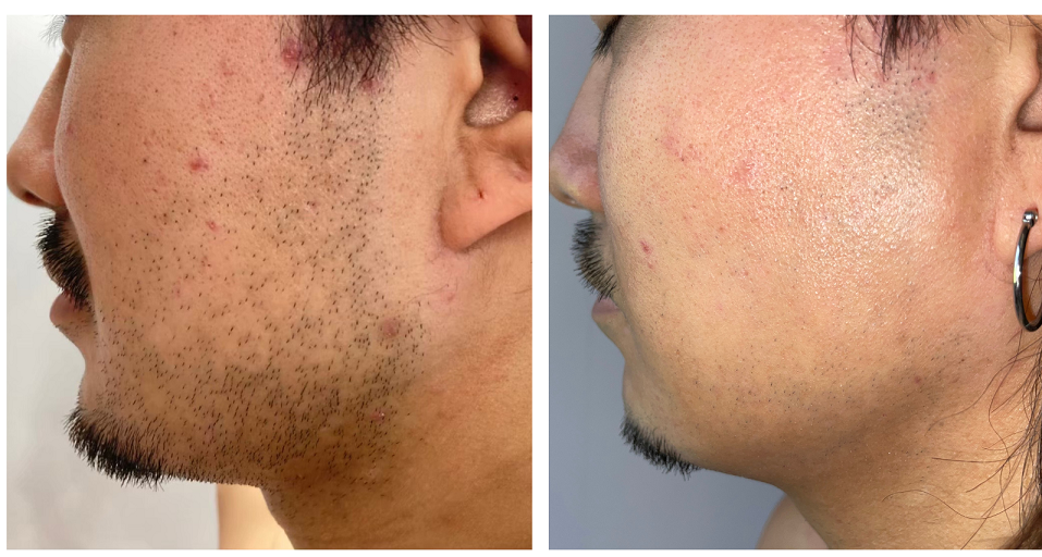 ヒゲ脱毛未経験の状態から、2週間に1回の頻度で10回通っていただいた結果の状態。ただヒゲが無くなるなるだけでなく、お肌の透明感や潤いもUPし清潔感増し増しに大変身!